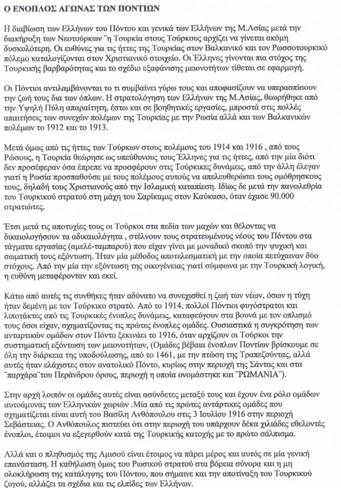 1. Ο ΠΟΝΤΟΣ 2. Η ΠΑΝΑΓΙΑ ΣΟΥΜΕΛΑ 3. Ο ΕΝΟΠΛΟΣ ΑΓΩΝΑΣ ΤΩΝ ΠΟΝΤΙΩΝ