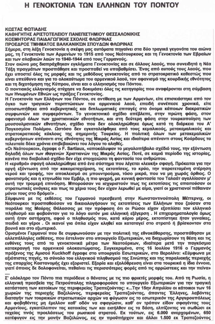 Η ΙΣΤΟΡΙΑ ΤΗΣ ΓΕΝΟΚΤΩΝΙΑΣ ΤΟΥ ΠΟΝΤΟΥ ΟΠΩΣ ΤΗΝ ΠΕΡΙΓΡΑΦΟΥΝ ΔΙΑΦΟΡΟΙ ΙΣΤΟΡΙΚΟΙ ΤΗΣ ΕΛΛΑΔΟΣ